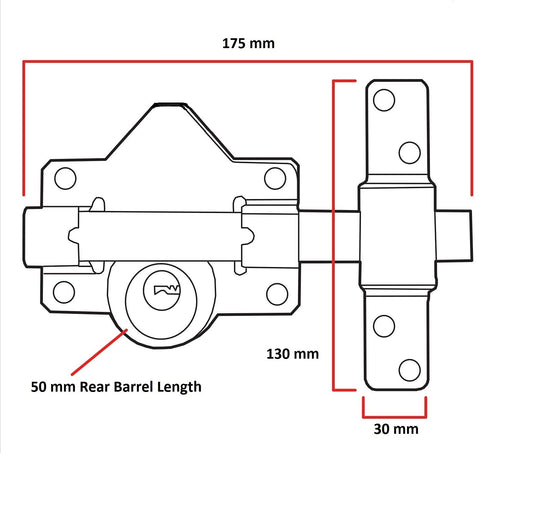 Haven Heritage 50mm Single Locking Long Throw Gate Cays Lock,Elongated Keep with Stainless Steel Bar