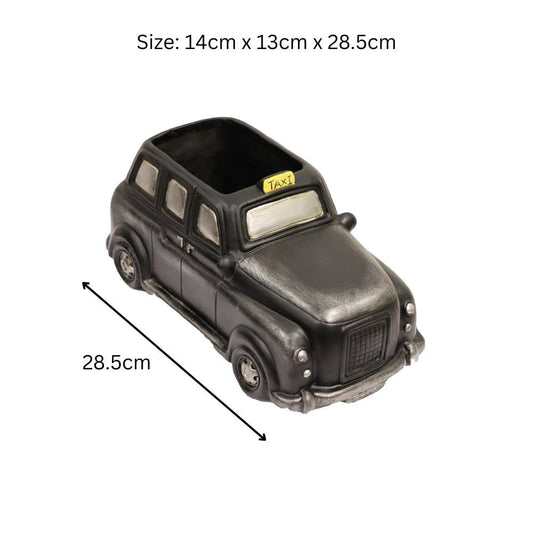 Resin London Taxi Planter – 14cm x 13cm x 28.5cm | Iconic Black Cab Flower Pot for Indoor & Outdoor Décor