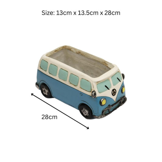 Blue Resin Camper Van Planter – 13.5cm x 13cm x 28cm | Vintage Camper Flower Pot for Indoor & Outdoor Décor