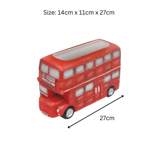 Resin London Bus Planter – 14cm x 11cm x 27cm | Iconic Red Double-Decker Flower Pot for Indoor & Outdoor Décor