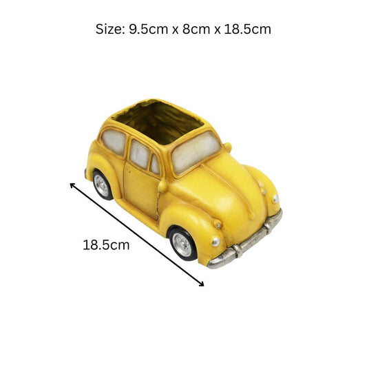 Yellow Resin Car Planter – 9.5cm x 8cm x 18.5cm | Vintage Mini Car Flower Pot for Indoor & Outdoor Décor