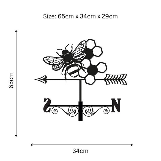 Metal Bee Silhouette Weathervane – 65 x 34 x 29 CM | Decorative Outdoor Wind Vane for Garden, Roof, Fence & Shed