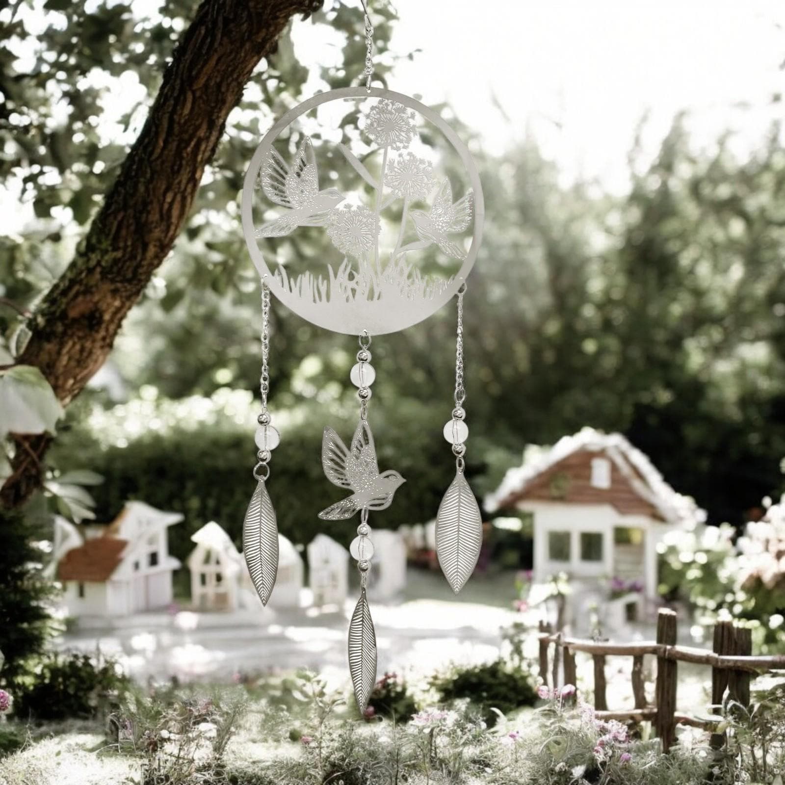 ✨ High-Quality Stainless Steel – Crafted from durable, rust-resistant stainless steel, this weatherproof wind spinner is perfect for long-lasting indoor or outdoor use. 🌬️ Relaxing Wind Spinner Effect – Features a hanging spiral attachment that gently spins in the breeze, creating a calming, hypnotic movement that enhances any setting. 📏 Ideal Size for Any Space – Measuring 59cm x 18cm, this elegant hanging ornament is large enough to stand out beautifully yet compact enough to suit smaller spaces like balconies or bedrooms. 🏡 Versatile Indoor & Outdoor Décor – Hang this dreamcatcher in gardens, patios, porches, balconies, bedrooms, meditation rooms, or living areas to bring a boho, nature-inspired charm to your home. 🎁 Perfect Gift for Bird Lovers & Spiritual Decor Enthusiasts – An ideal gift for those who appreciate birds, nature, and artistic home décor. Great for housewarmings, birthdays, or meditation spaces. 🐦 Why Choose the Bird Stainless Steel Hanging Dreamcatcher? ✅ Beautiful Bird Silhouette for a Nature-Inspired Look ✅ Premium Stainless Steel for Durability & Weather Resistance ✅ Spinning Motion Creates a Relaxing, Meditative Effect ✅ Perfect for Indoor & Outdoor Use – Home, Garden, Patio & More ✅ A Thoughtful Gift for Birdwatchers, Spiritual Seekers & Nature Lovers Add a touch of serenity and elegance to your surroundings with this stunning stainless steel bird dreamcatcher – a perfect combination of art, movement, and spiritual symbolism. 🔹 Order Now to Elevate Your Home & Garden Décor! 🔹🐦 Bird Stainless Steel Hanging Dreamcatcher – Elegant & Tranquil Outdoor & Indoor Wind Spinner Enhance your home, garden, or patio with the Bird Stainless Steel Hanging Dreamcatcher, a beautifully crafted 59cm x 18cm wind spinner that adds a sense of peace, movement, and nature-inspired elegance to any space. Featuring a delicate bird silhouette within a circular stainless steel frame, this dreamcatcher symbolizes freedom, tranquility, and harmony. Its hanging spiral design creates a mesmerizing motion in the wind, making it a stunning focal point for any setting. Designed for both indoor and outdoor use, this boho-style stainless steel dreamcatcher is perfect for gardens, balconies, porches, meditation rooms, or bedrooms. Whether you're a nature lover, bird enthusiast, or spiritual seeker, this dreamcatcher is a perfect decorative accent or a meaningful gift for someone special.