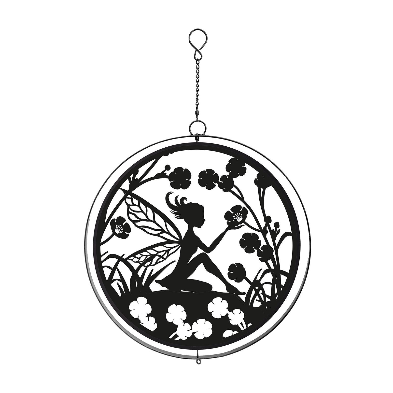 Transform your outdoor oasis with the enchanting Black Metal Fairy Silhouette Orbit Spinner Decor. This captivating piece features a beautifully crafted fairy silhouette that gracefully dances in the breeze, creating a mesmerizing focal point that adds a touch of magic to any space. Designed from durable metal, this spinner is perfect for hanging in gardens, patios, or on balconies, where it can catch the light and draw the attention of all who pass by.Measuring [insert dimensions], the spinner's elegant design and striking black finish complement a variety of outdoor aesthetics, making it a versatile addition to your decor. Easy to hang and lightweight, the fairy spinner will bring whimsy and charm to your outdoor environment, inviting a serene and tranquil atmosphere. Perfect for garden lovers and fairy enthusiasts alike, this delightful decor piece makes a thoughtful gift for friends and family looking to enhance their outdoor spaces.Let the gentle motion of the fairy silhouette inspire your imagination and bring a sense of wonder to your surroundings. Elevate your outdoor experience with this enchanting spinner that captures the spirit of nature and fairy tales in perfect harmony.