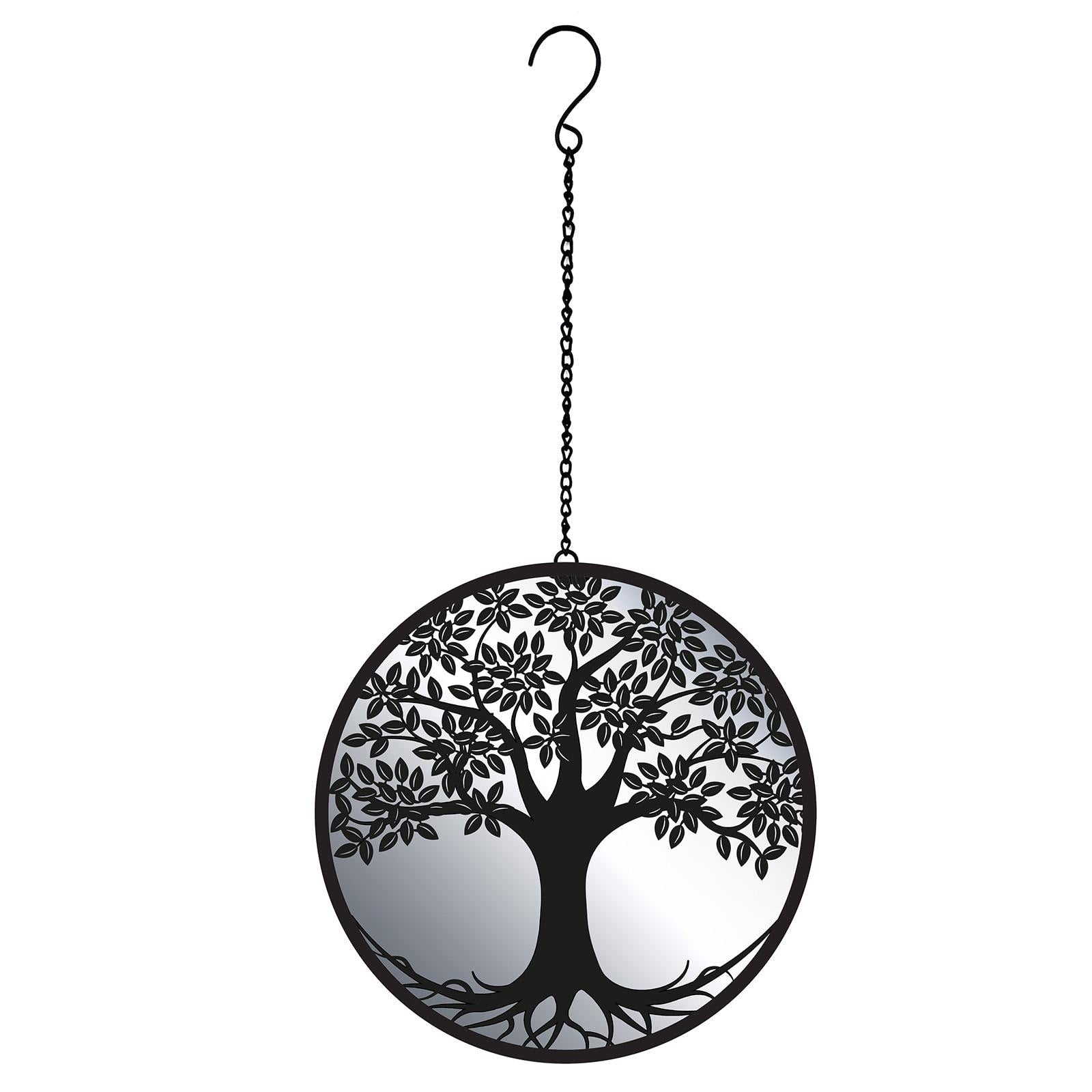 Black Tree Hanging Mirror Silhouette – 39cm x 23cm | Metal Tree Wall Art & Garden Décor | Reflective Hanging Ornament