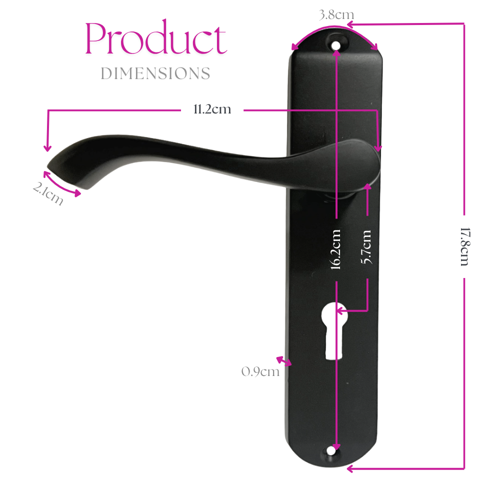 Bring both style and security to your home with the Cadenza Matt Black Scroll Lever Handles. Featuring a traditional scroll design on a rectangular backplate, this set is finished in sleek matt black for a bold, modern look. Supplied complete with a 3 Lever Sash Lock and matching escutcheons, it’s ideal for rooms that require key-operated locking such as bedrooms, offices, or storerooms.