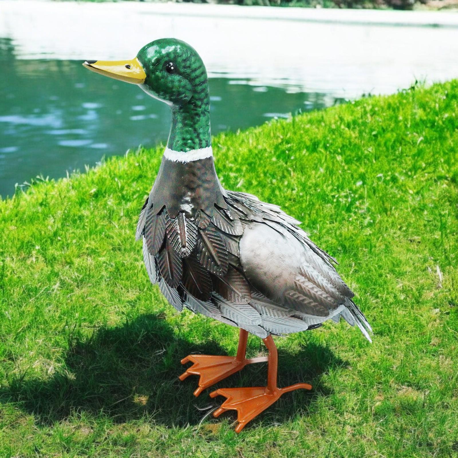 Metal Farmyard Male Duck (38.5cm x 15.5cm x 30cm) β Handcrafted Rustic Duck Garden Ornament β Weather-Resistant Metal Duck Statue