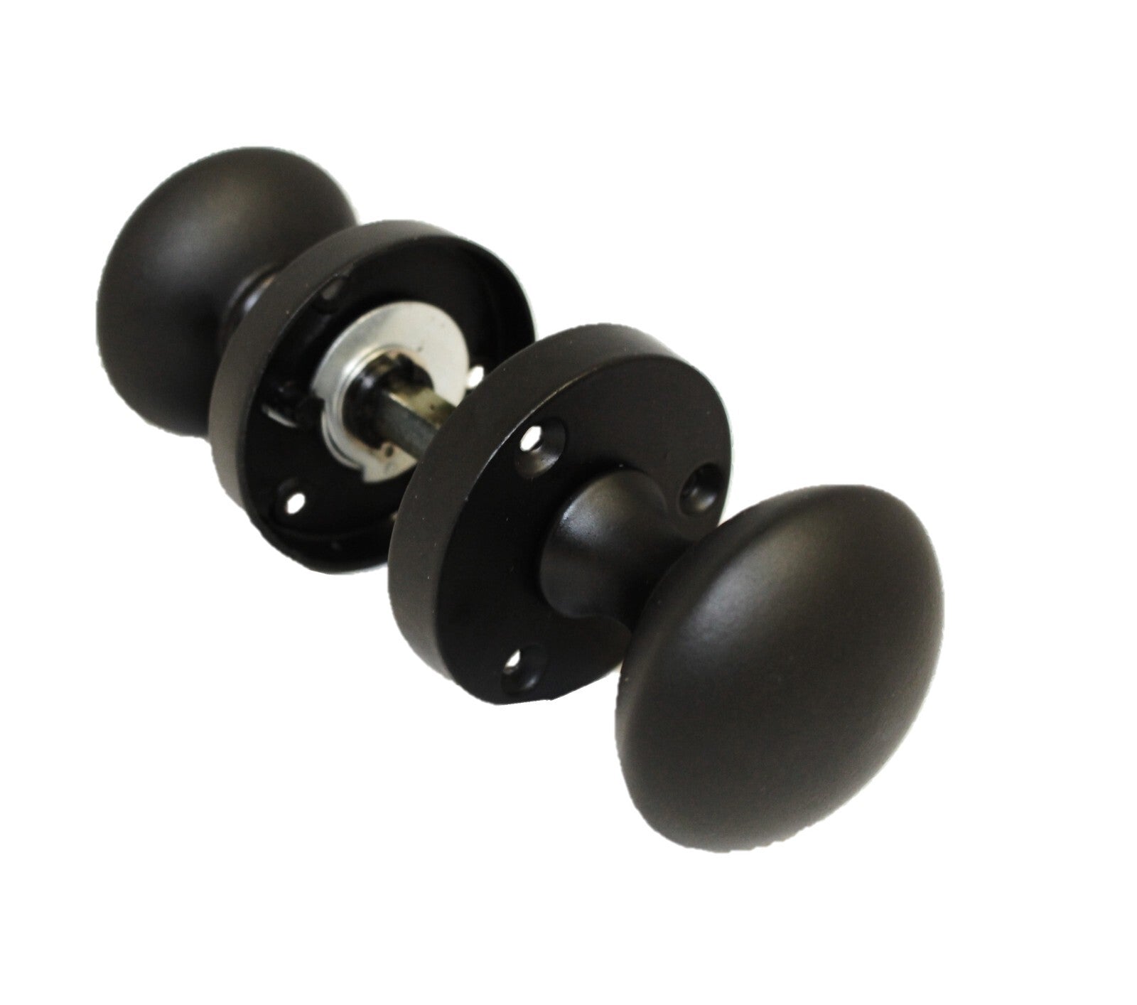Matt Black Round Door Knob - Victorian Style Sprung Internal & External Door Knobs for Mortice Locks & Tubular latches