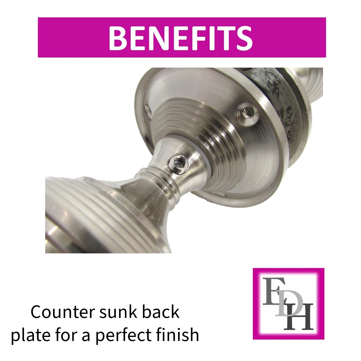 Queen Anne Reeded Mortice Door Knobs, Interior Door Knobs for Home, Round Internal Door Knob with Tubular Latch - Durable Satin Door Knobs (1 Pair of KNOBS)