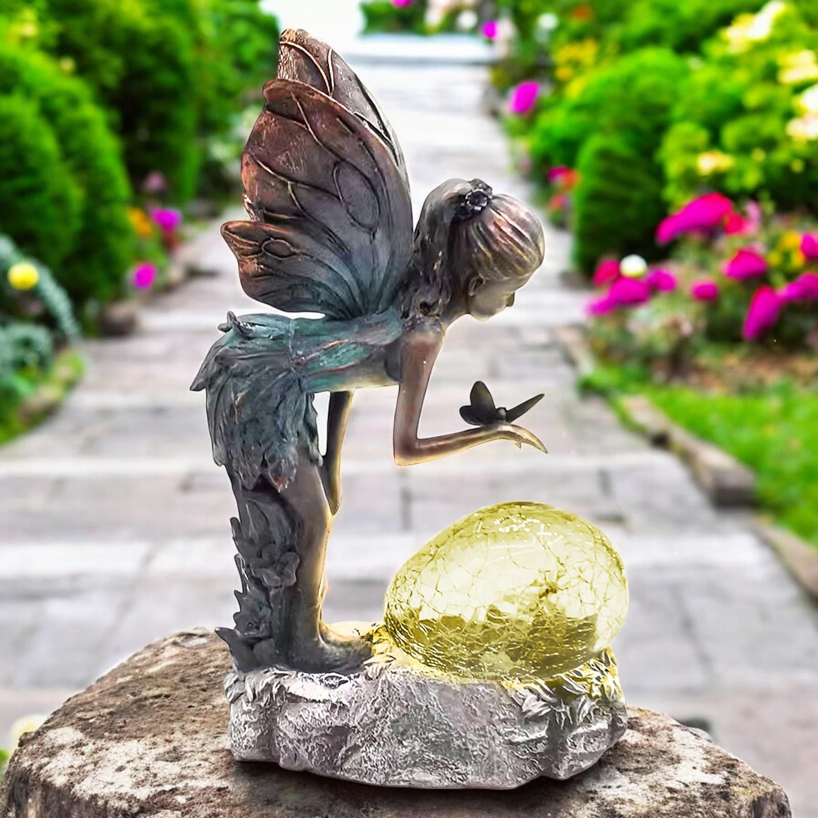 π Key Features: π§ Charming Fairy Design β A delicately detailed fairy sculpture, perched gracefully and holding a glowing bubble light, bringing an enchanting touch to any outdoor space.