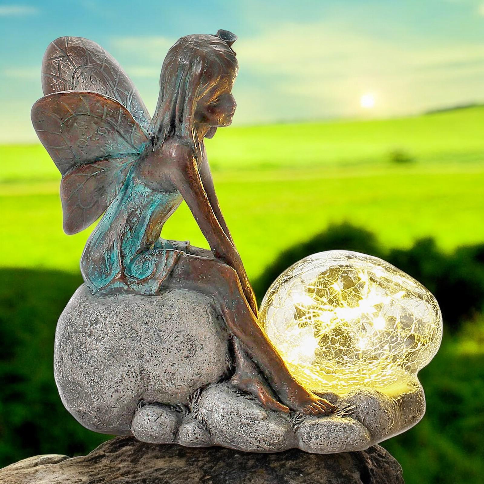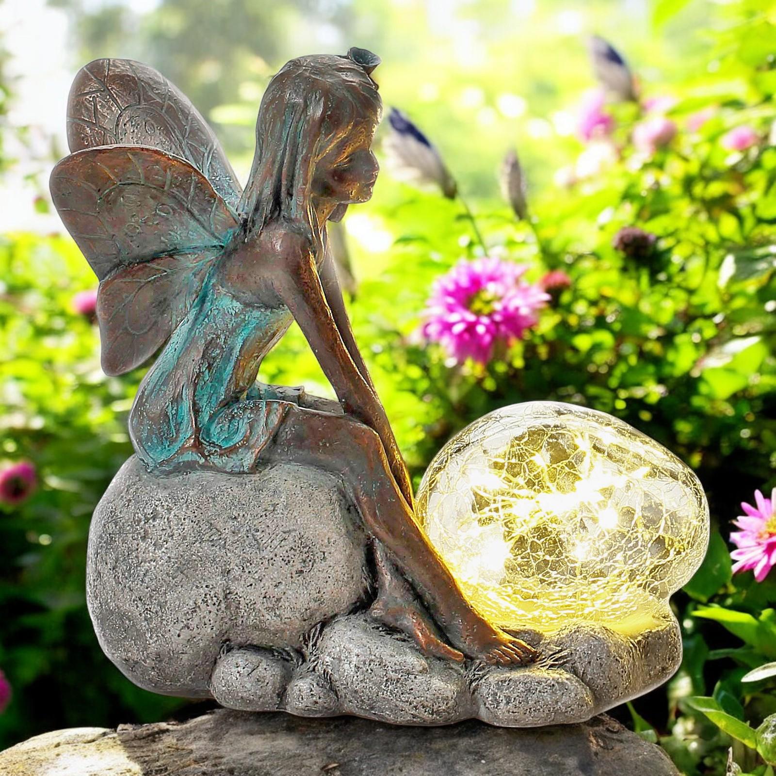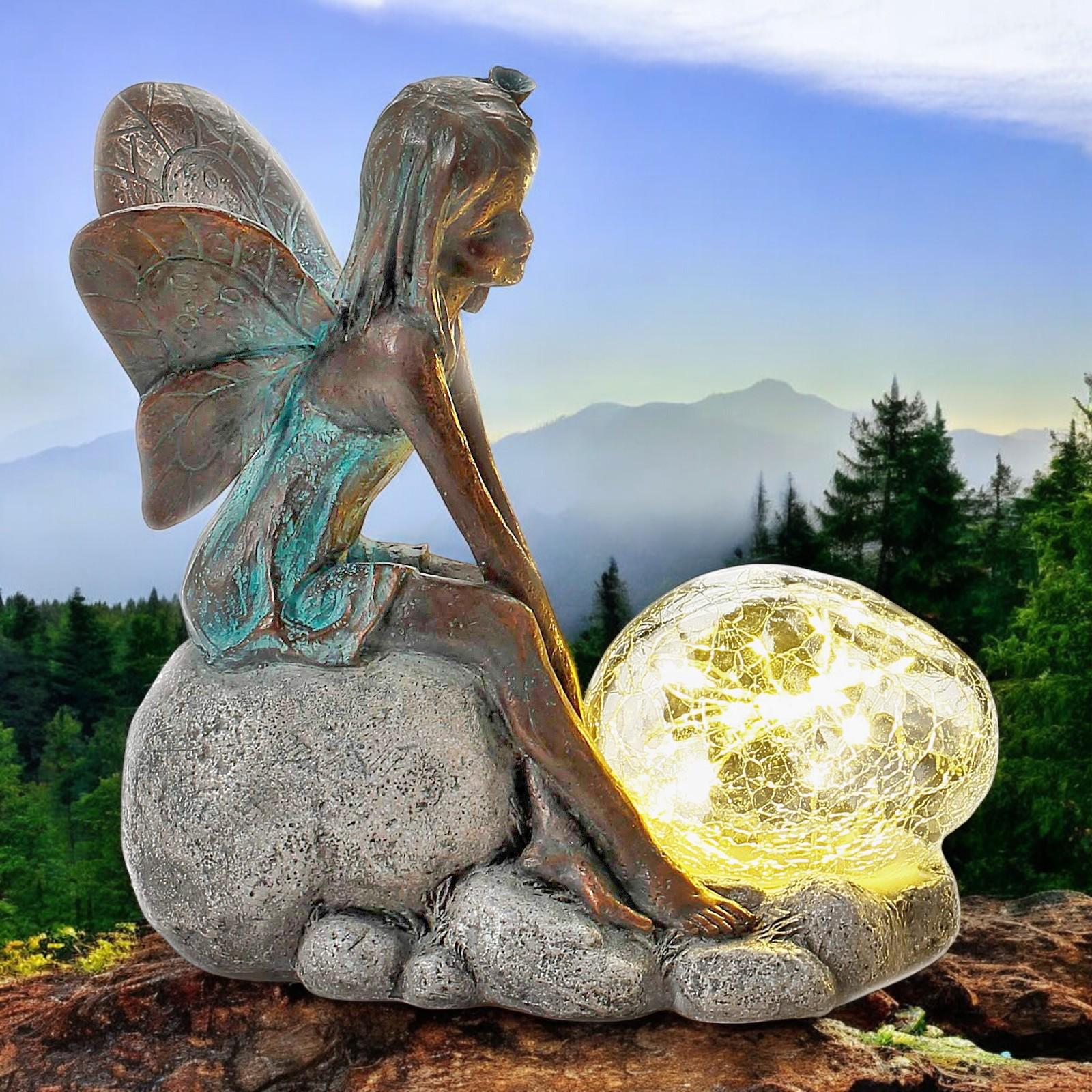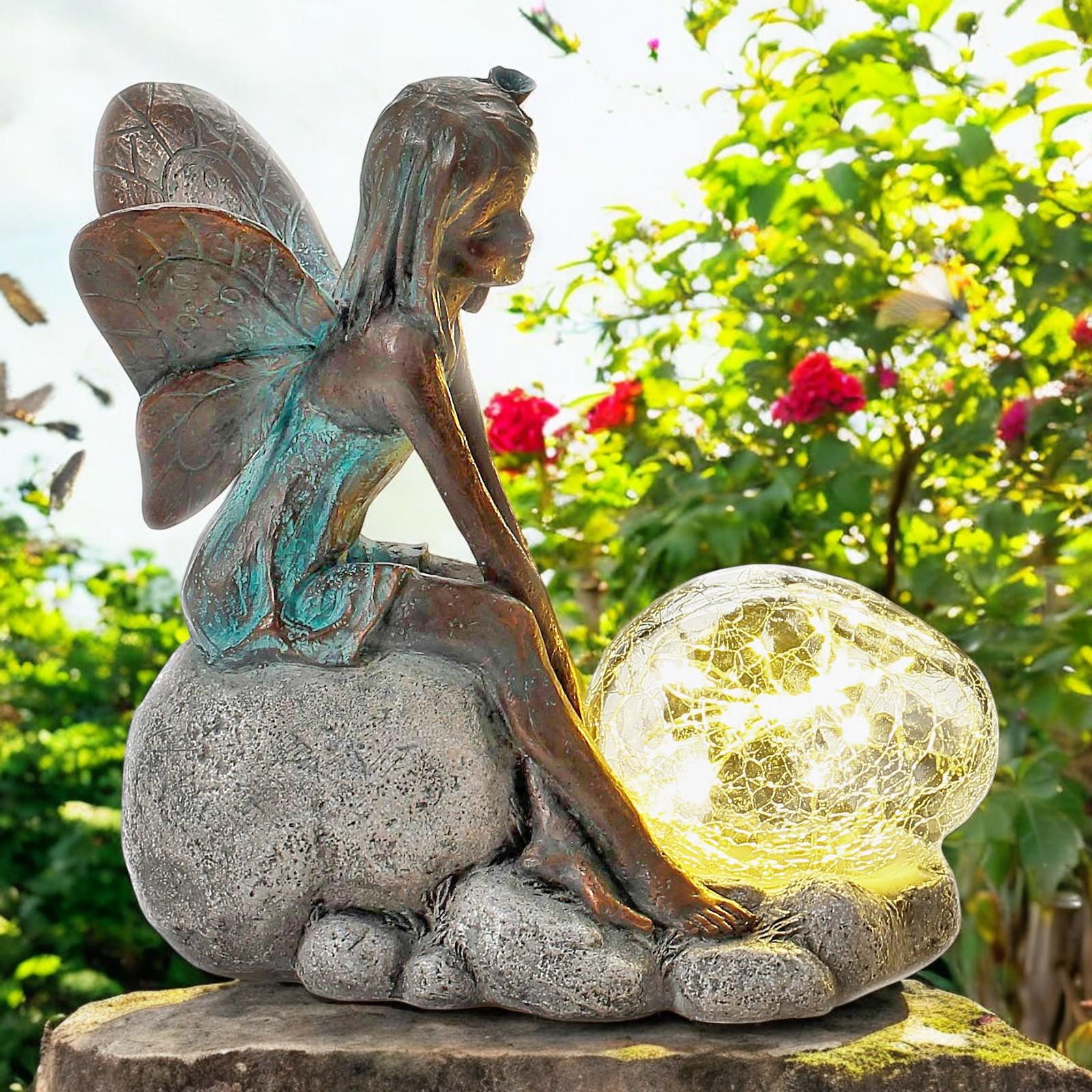 Resin Sitting Fairy with Solar Bubble Light – 25.5cm x 25cm x 12cm | Enchanting Garden Ornament with LED Glow for Outdoor & Patio Décor