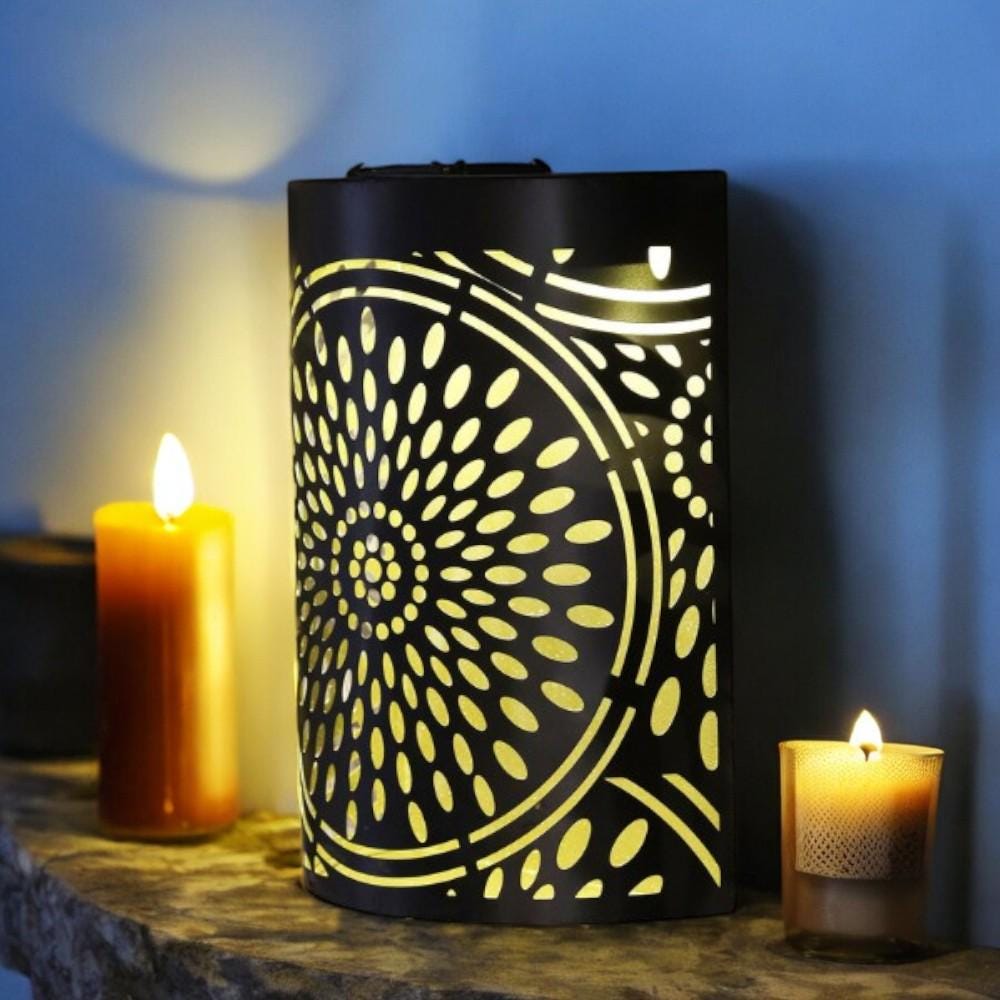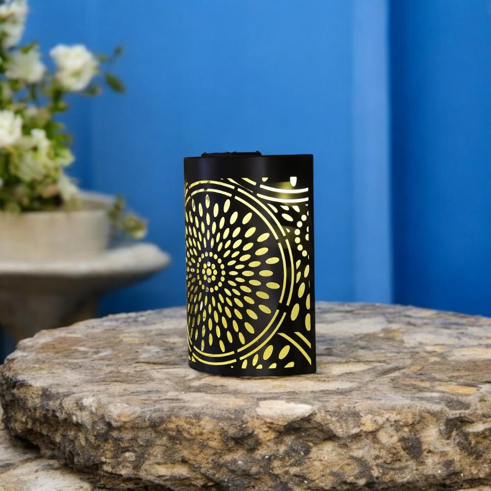 Small Metal Curved Moroccan Solar Wall Panel β 25.5 x 19 x 5.5 CM | Solar-Powered Outdoor Wall Art | Weatherproof Garden Panel for Patio
