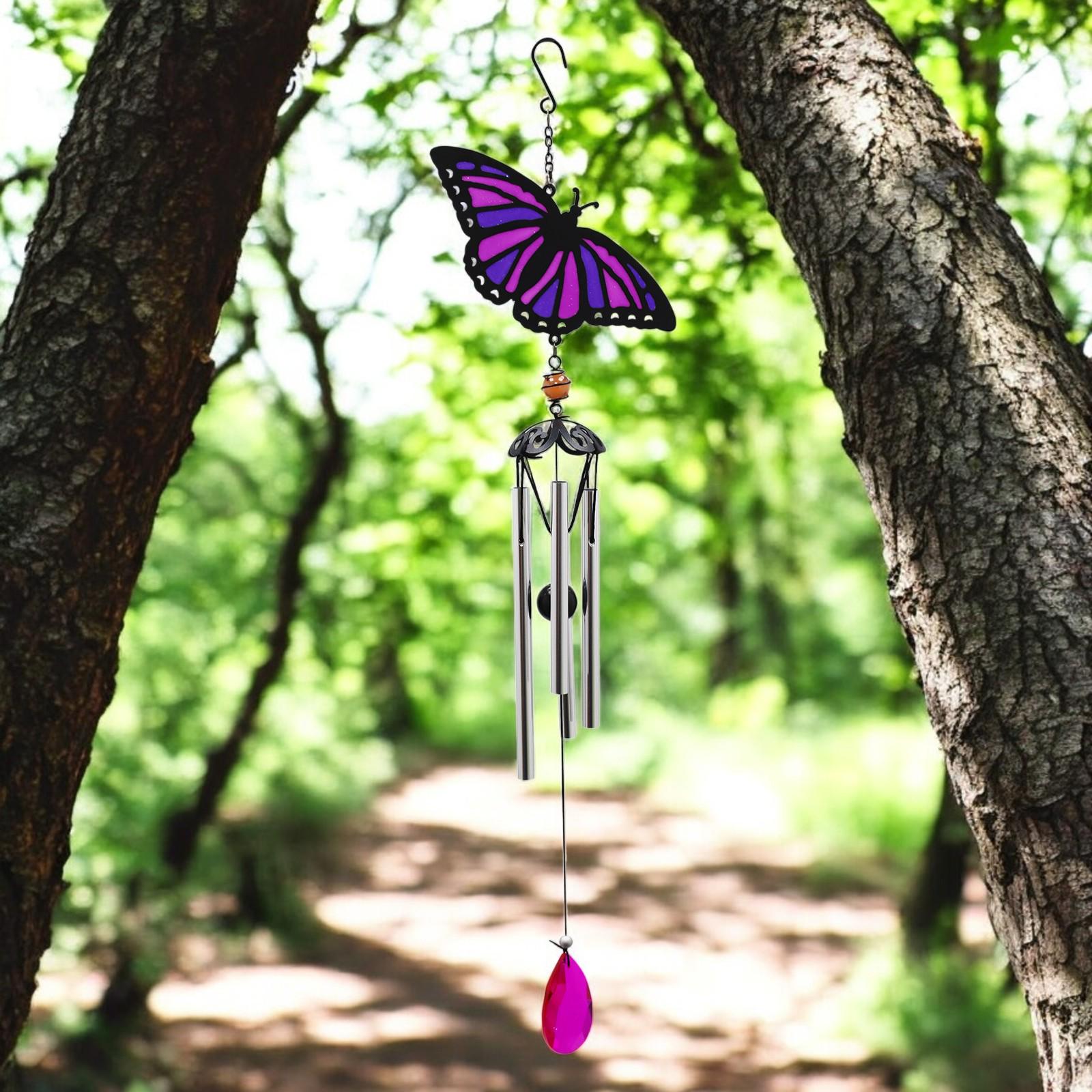 Suncatcher Purple Butterfly Wind Chime (58cm x 14cm x 6cm) β Handmade Metal & Glass Hanging Chime β Outdoor Garden Ornament