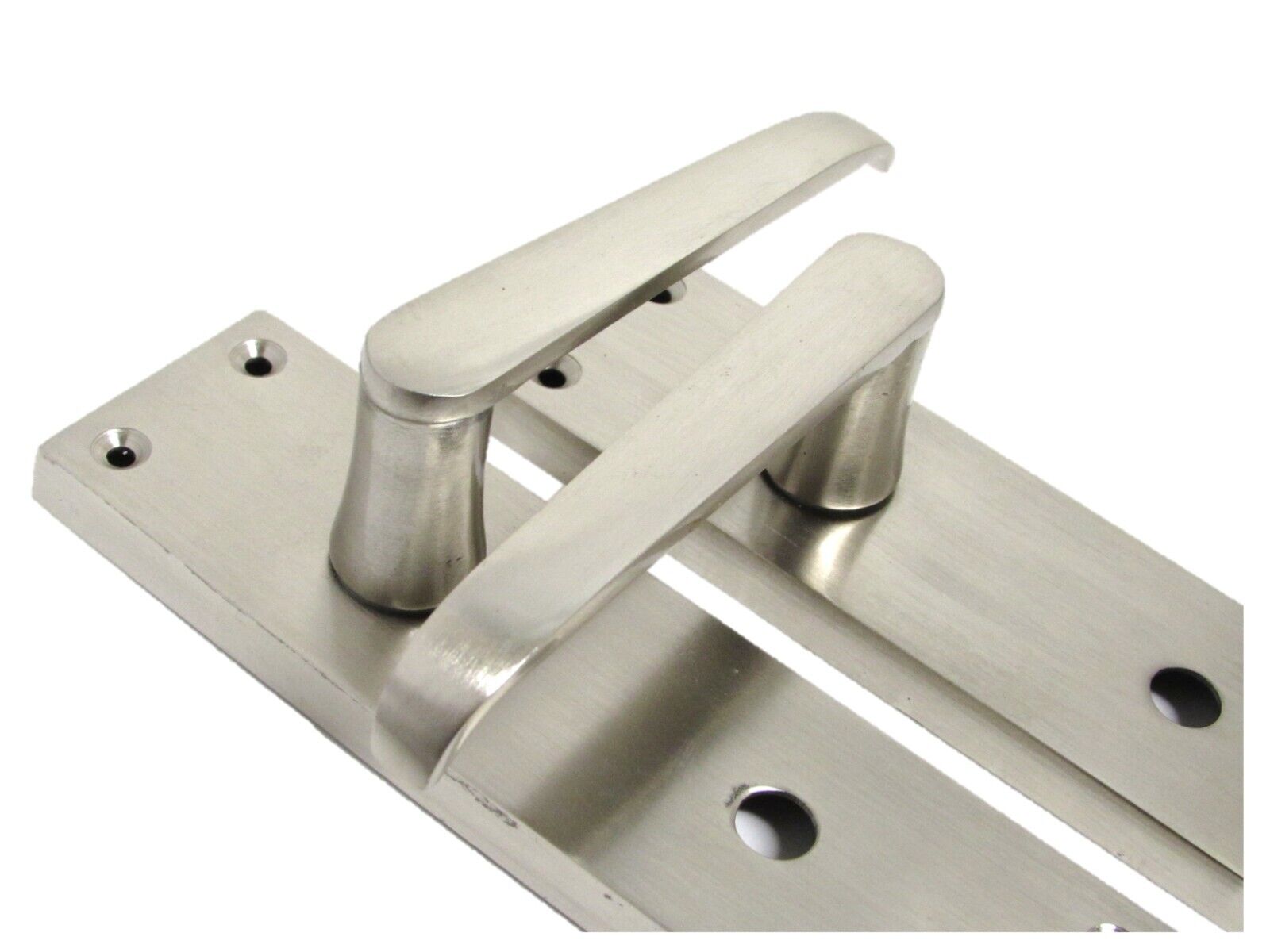 Satin Nickel Victorian Straight Bathroom Handles and 3 Lever Mortise Sash Lock, Back Plate, 150 x 42mm